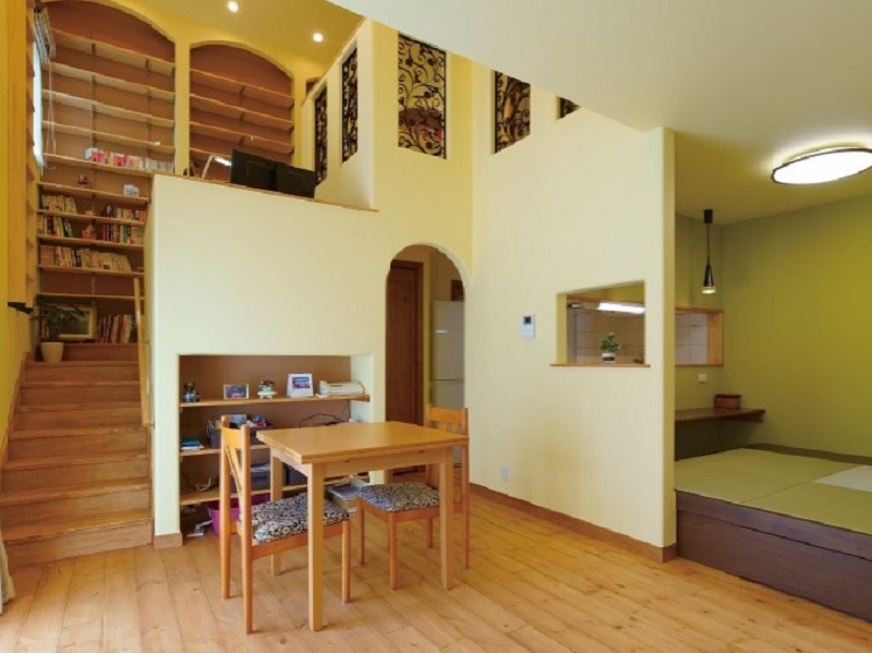 リビングに足を踏み入れると、その立体的で遊び心のある空間に驚かされるN様邸。